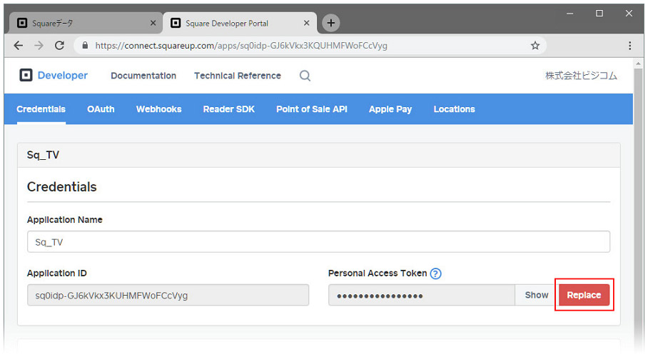 ※ 連携キーの作成は「② - SquareDeveloperで、連携用のキーを作成 」を参照