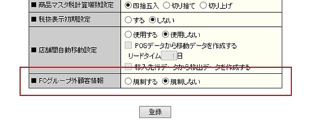 「FCグループ外顧客情報」を規制しないにすると、FC版の顧客情報の規制を以下のように除外します。