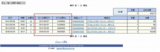 BCPOSで仕入時に仕入伝票日付と仕入伝票Noを入力する事ができますが、その入力した仕入伝票日付、仕入伝票Noにて検索できるように修正しました。